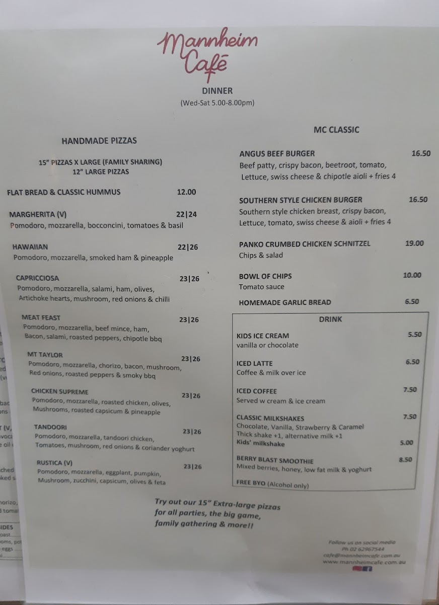 Whether you’re a local or a visitor, Mannheim Cafe promises a delightful culinary adventure that leaves you eager to return. With rave reviews from satisfied patrons like Jorge Garcia and Mrs. Bushranger, stating it’s “one of the best cafes on the south side of Canberra,” it’s clear that this spot is not just a simple cafe but a community pillar. So why wait? Head over to Mannheim Cafe and treat yourself to a memorable dining experience today!